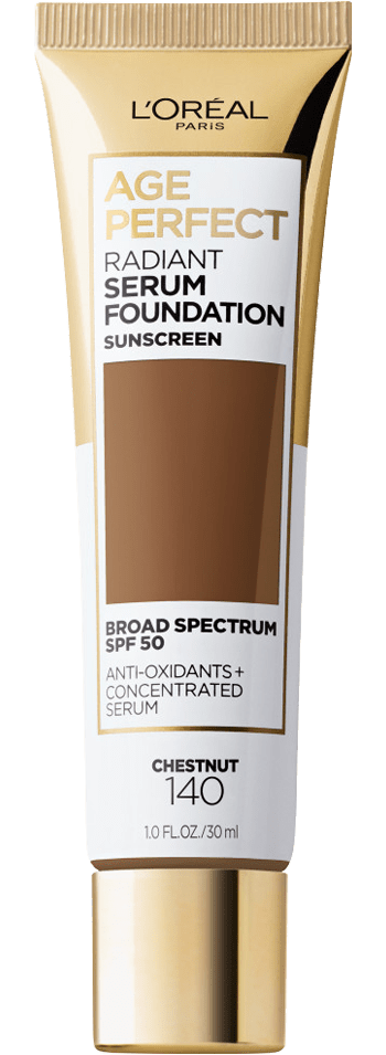 Finally, makeup specially designed for mature skin—Age Perfect by L’Oreal Paris Cosmetics, Radiant Serum Foundation is a carefully formulated foundation for mature skin. Formulated with Vitamin B3 and Hydrating Serum, this lightweight foundation provides coverage while also being suitable for sensitive skin. Radiant Serum Foundation evens tone with natural, radiant coverage that doesn’t settle into lines. All the benefits of a foundation with the added advantage of all-day hydration and SPF 50.
