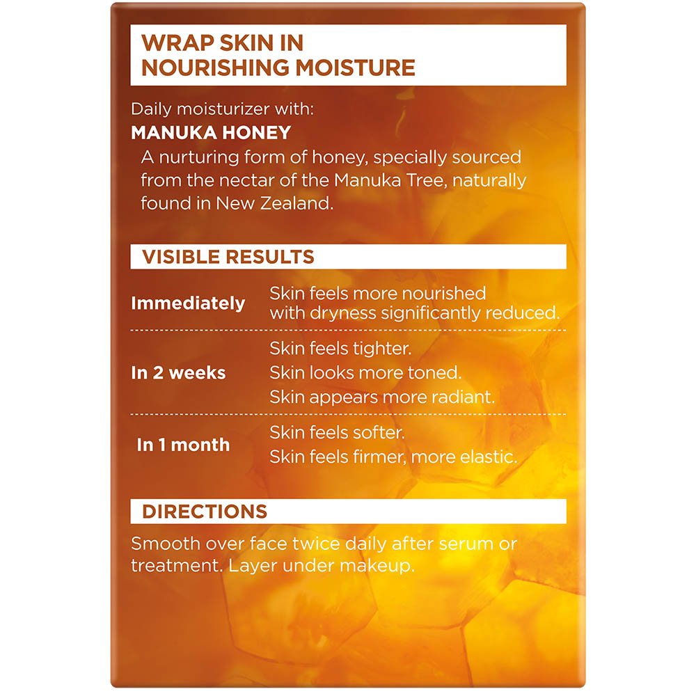Decadent, creamy face moisturizer with nurturing oils and Manuka Honey Extract is infused with calcium and antioxidants. Envelops the skin with a soft, silky layer of comfort to replenish skin with 24H of long lasting, non-greasy, non-sticky hydration. Rich cream penetrates effectively into the skin’s surface layer to restore comfort and nourishing moisture to mature, very dry skin. Leaves skin firmer, feeling supple and elastic with a healthy glow. Paraben free, allergy tested, non-sticky, suitable for sensitive skin. Packaging May Vary. What you receive may not be what is reflected on site.