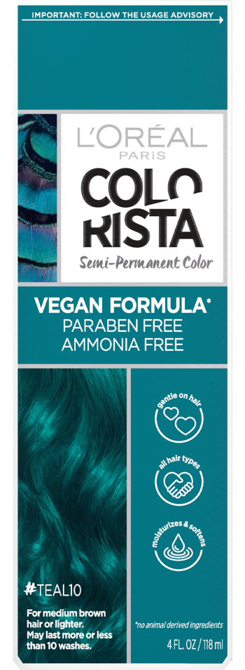 Our gentle 2-in-1 semi-permanent hair color conditioning hair mask delivers a supercharged bold look in one easy step, without the long-term commitment. Colorista Semi-Permanent hair color moisturizes and softens all hair types while depositing vivid pure direct dyes. Colorista fades gradually after each shampoo! No Parabens, Sulfates, Phtalates, Peroxide, or Ammonia. 100% vegan formula – no animal derived ingredients.