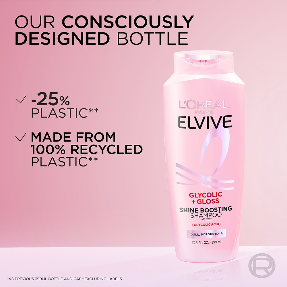 • Next-Level Shine – The Elvive Glycolic + Gloss Shampoo and Conditioner gently cleanse and instantly smooth, adding shine to dull, lackluster hair.