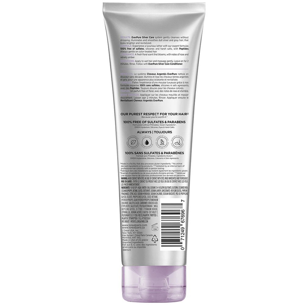 Reinvigorate your silver and gray strands at home with EverPure Silver Care Shampoo. It’s enriched with skin care inspired ingredients, including strengthening peptides, to leave hair noticeably smoother with added bounce and volume. The nourishing formula: