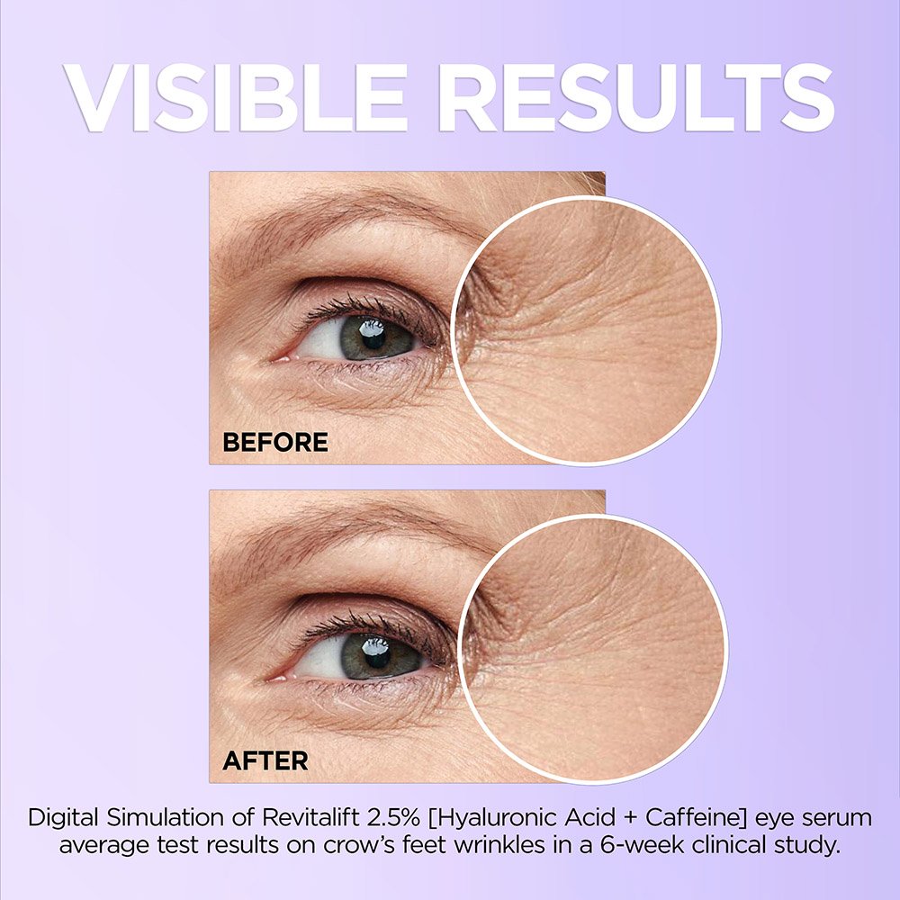 Validated in partnership with an advisory panel of dermatologists, the serum even layers well under makeup. Instantly, skin feels moisturized and eyes look less tired. Over time: