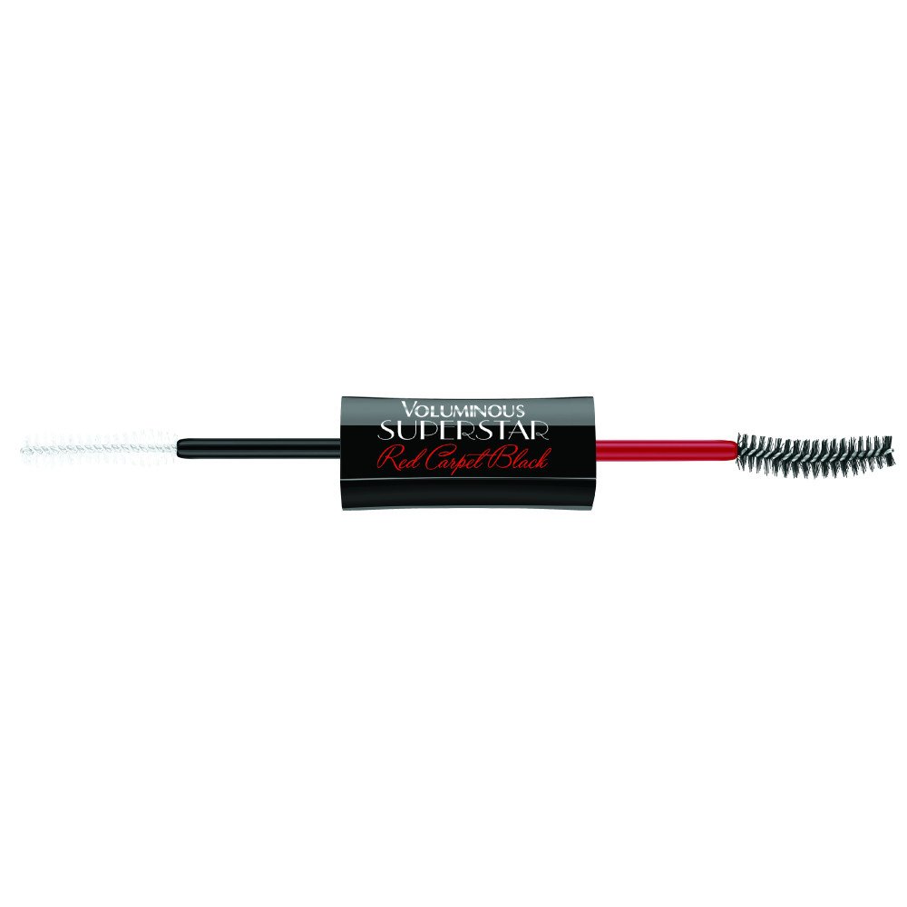 Get camera-ready with Voluminous® Superstar Red Carpet Black mascara, our first Primer and Mascara for a show-stopping red carpet look. Super-volumizing primer builds dramatic volume on every lash and creates an ultra-smooth base to maximize mascara impact. Fiber-rich lengthening mascara extends lashes to the extreme. Now infused with light-reflecting pearls that glisten in the night. Red carpet, here you come.