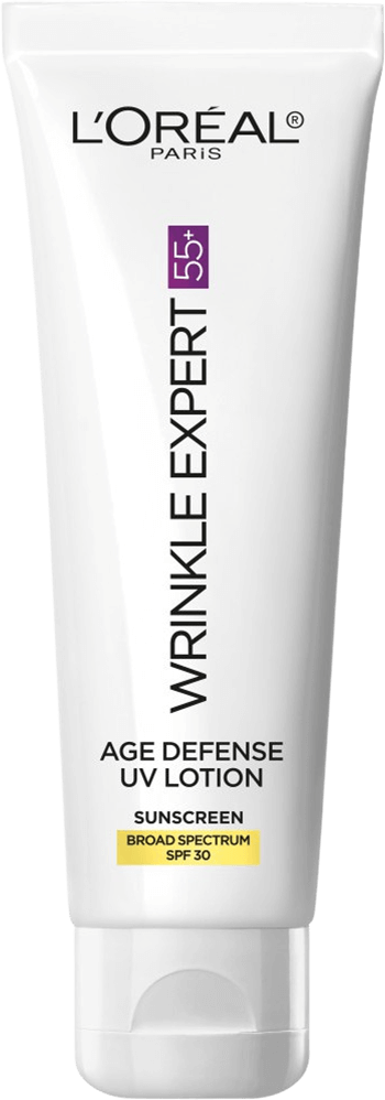 Reduce wrinkles and protect skin against sun induced aging*. NEW Wrinkle Expert Age Defense UV lotion 55+ formula with calcium and Broad Spectrum SPF 30 strengthens, smooths and protects skin.